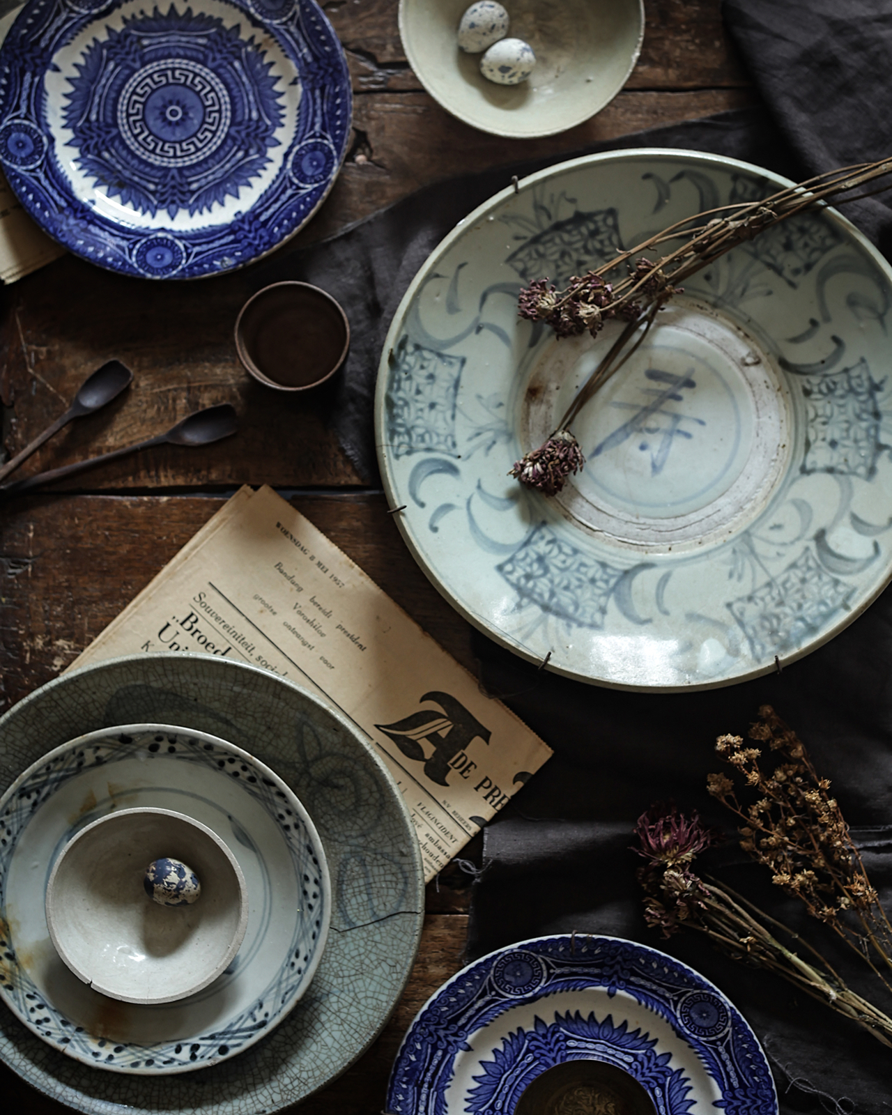 Flat-lay View of Asian Ceramic Plates